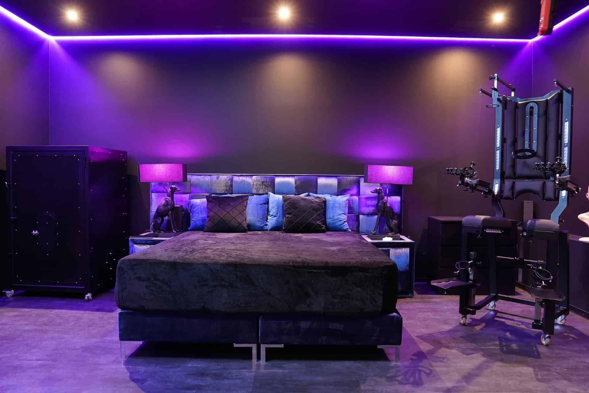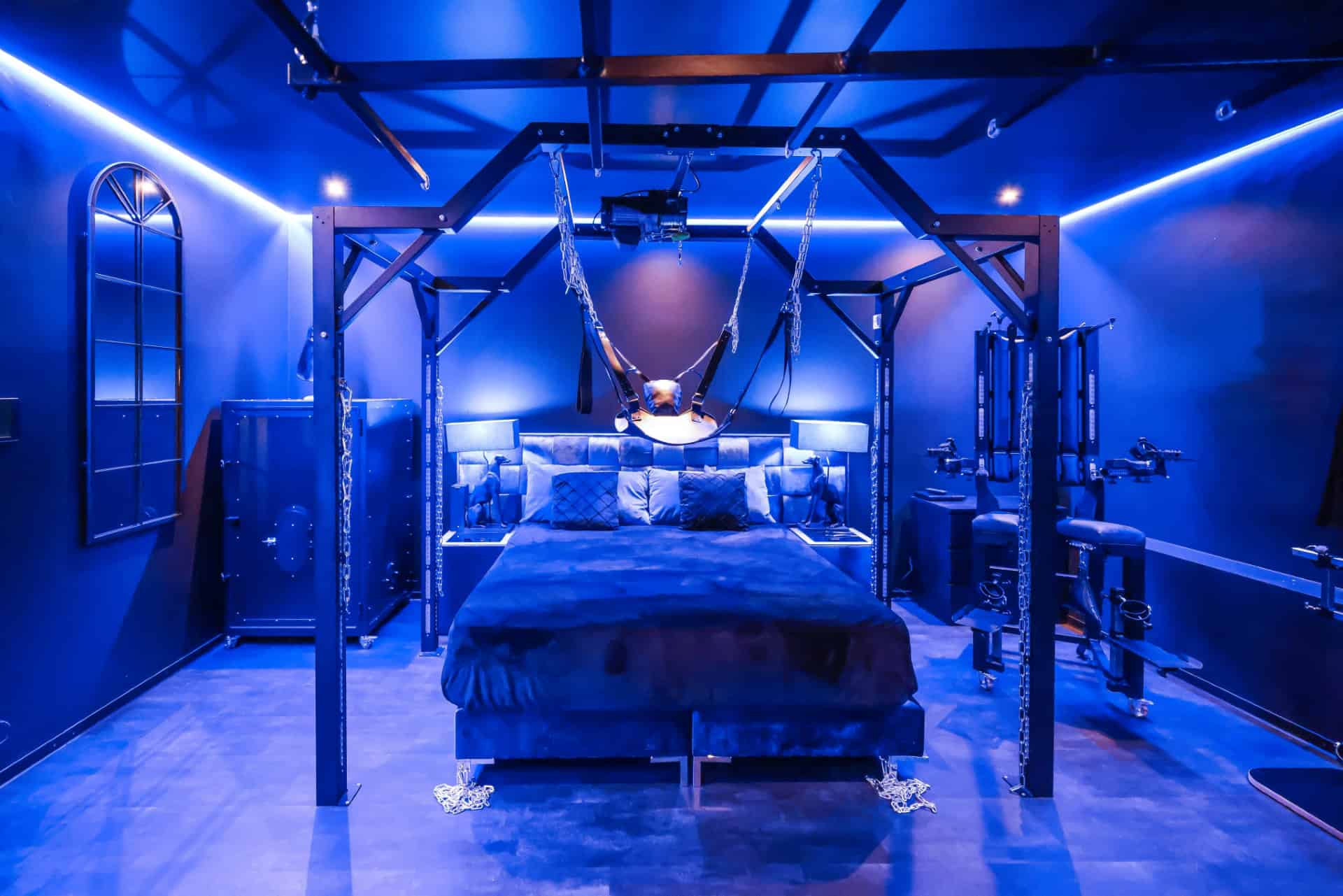 Willkommen in der Arena der Intensität. Das “Black & Blue” duldet keine Kompromisse. Der Raum ist eine Hommage an die Ästhetik der Härte: Dunkle Wände, kühler Stahl und funktionales Design schaffen eine Atmosphäre konzentrierter Dominanz.