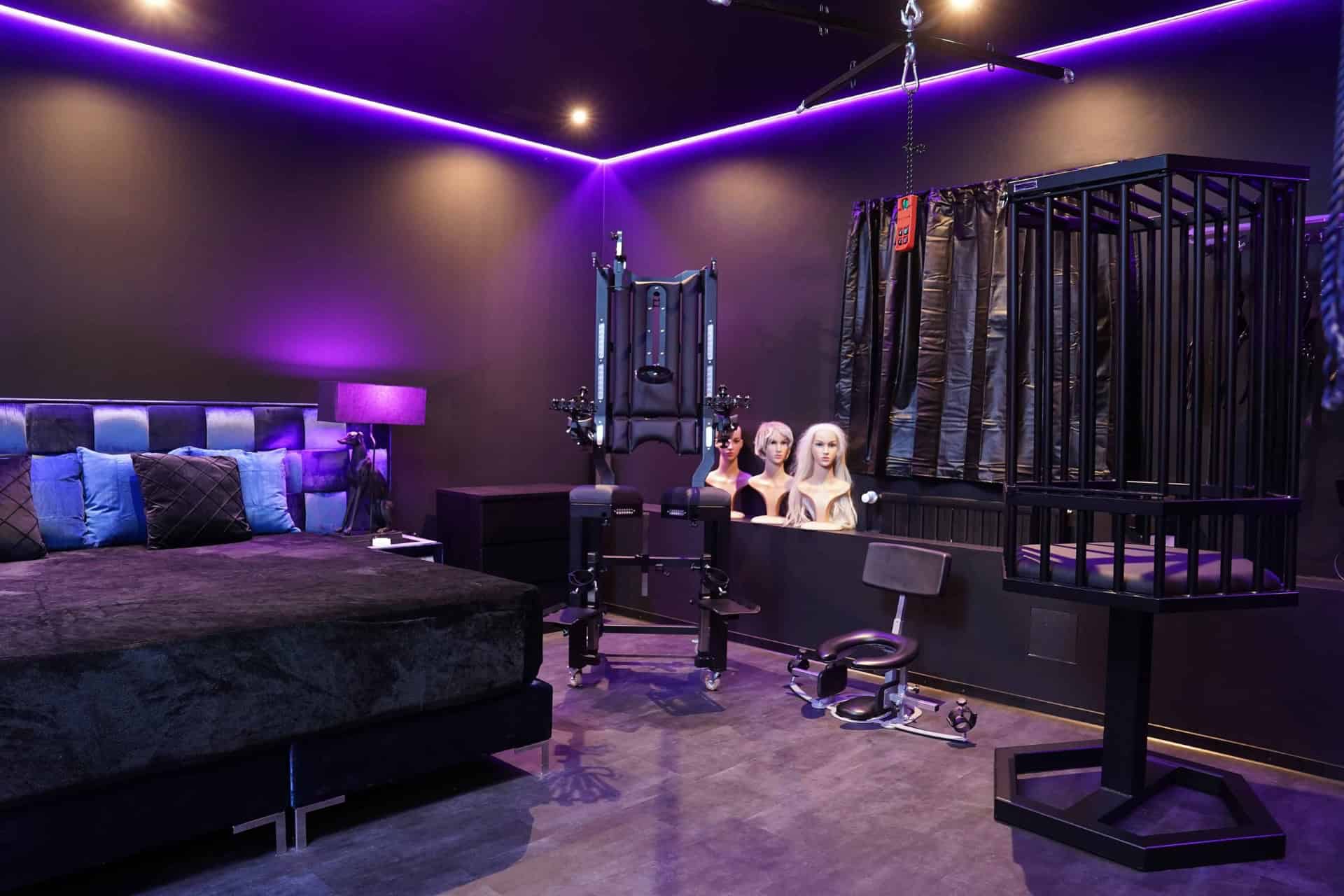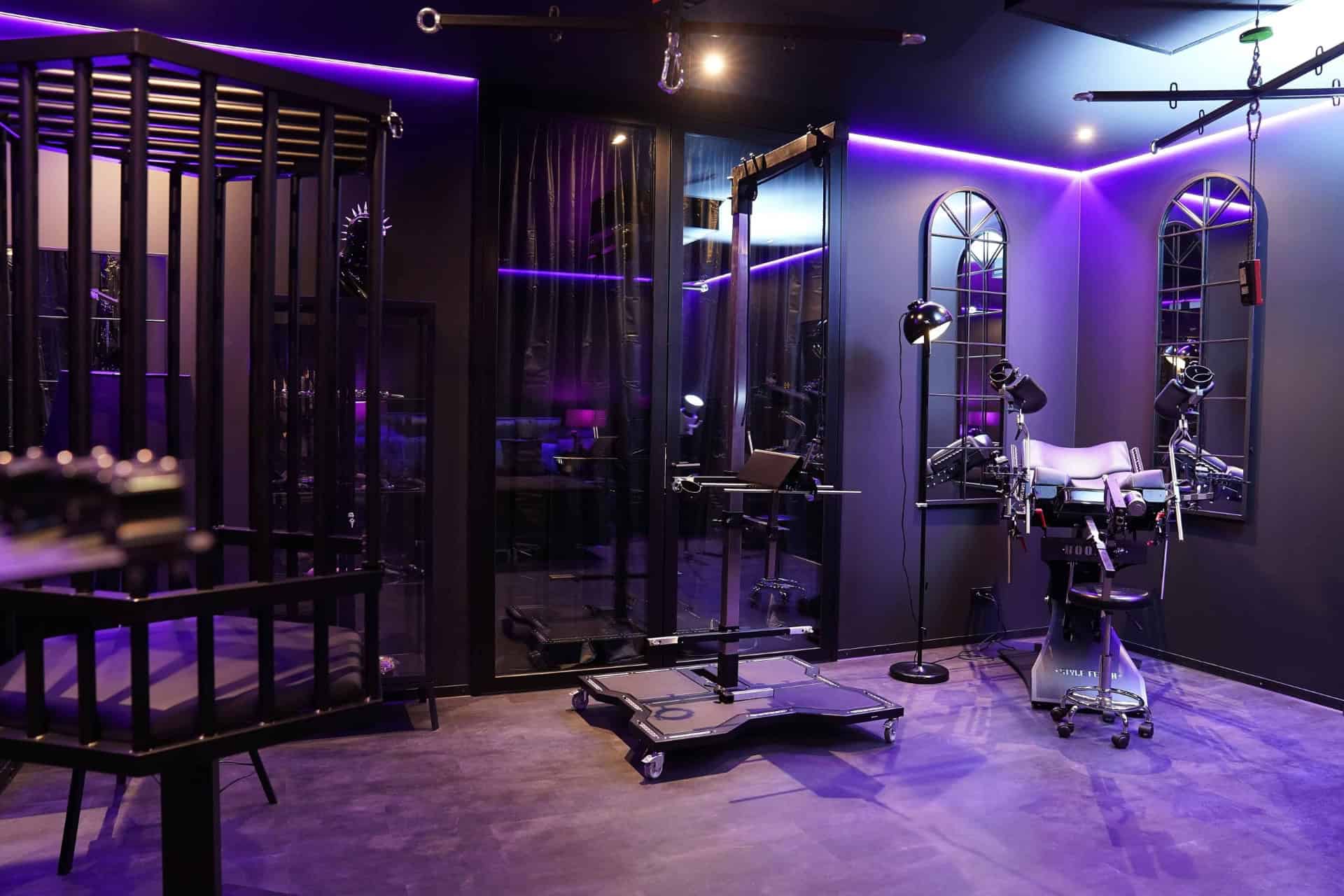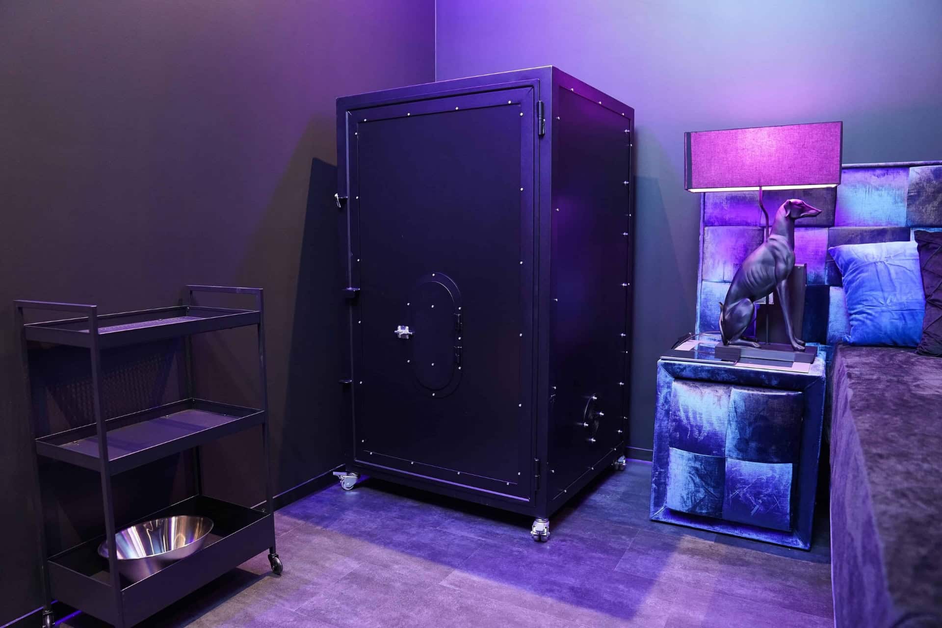 Für Liebhaber der Fesselkunst und Suspension bietet der Bondage Tower mit integrierter Seilwinde und drei Flaschenzügen grenzenlose Möglichkeiten in der Vertikalen. Wer die sensorische Deprivation sucht, findet sie in der Isolation Box oder dem engen Stehkäfig.