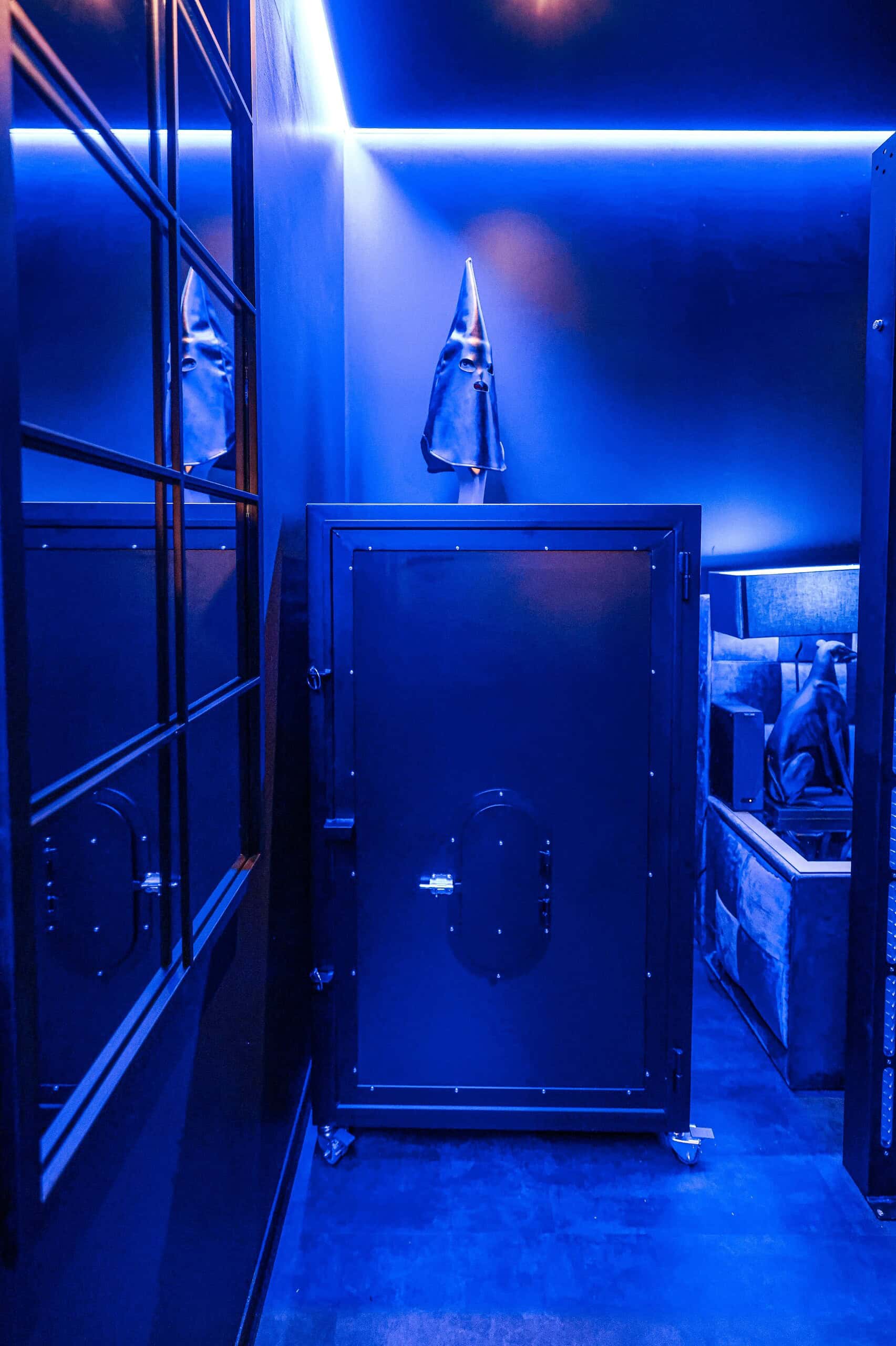 Sämtliche Kontaktflächen – vom Leder der Stühle bis zum Stahl der Käfige – werden nach jedem Besuch professionell gereinigt und mit klinischen Mitteln desinfiziert. Sie übernehmen das “Black & Blue” stets in einem makellosen, versiegelten Zustand.