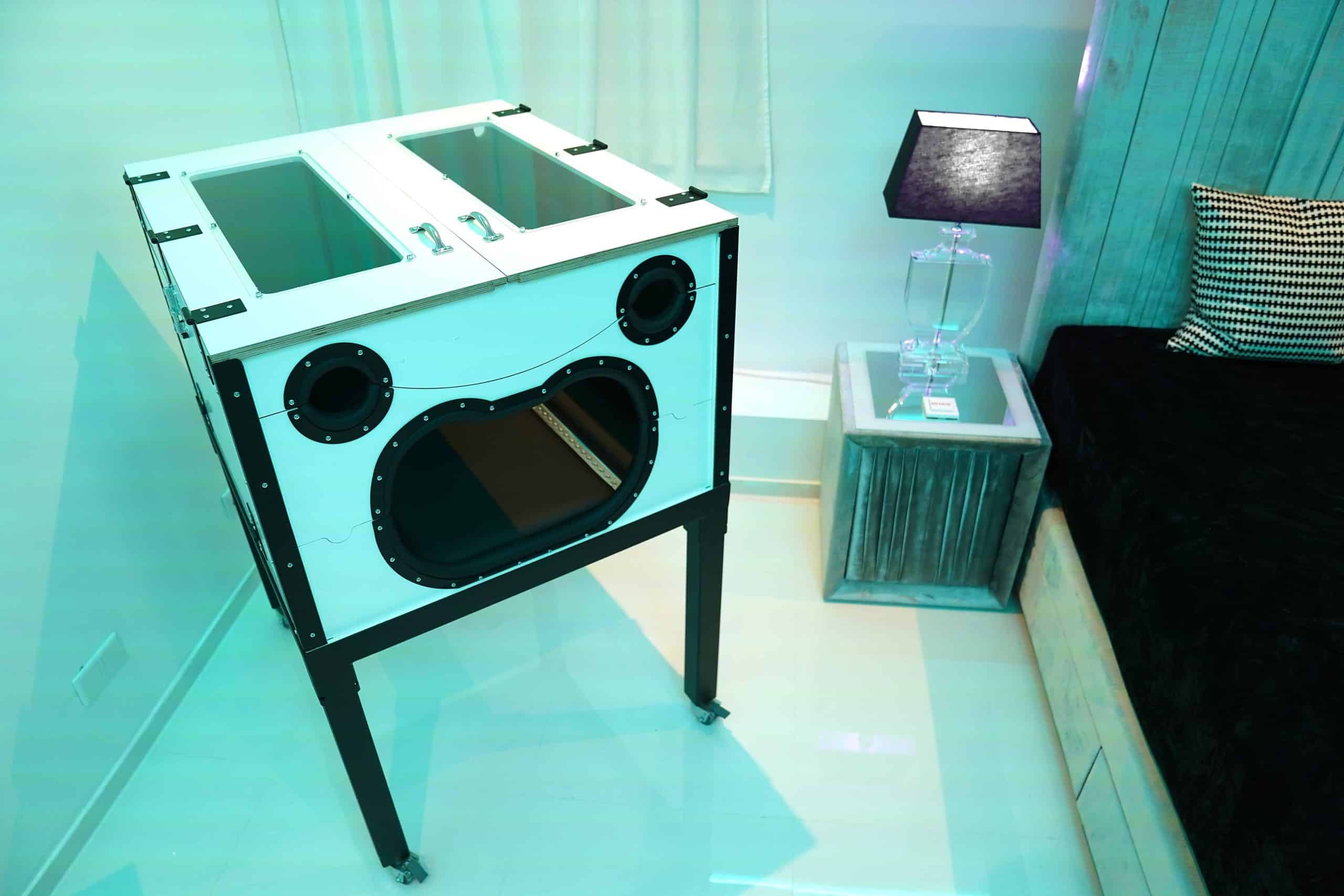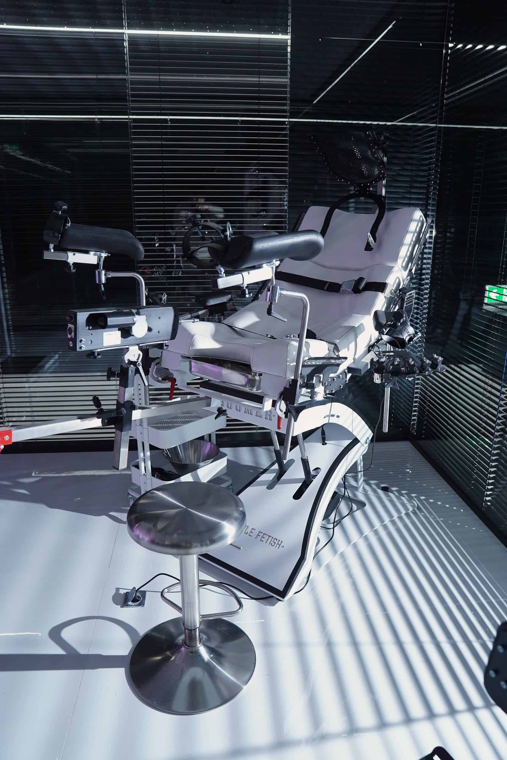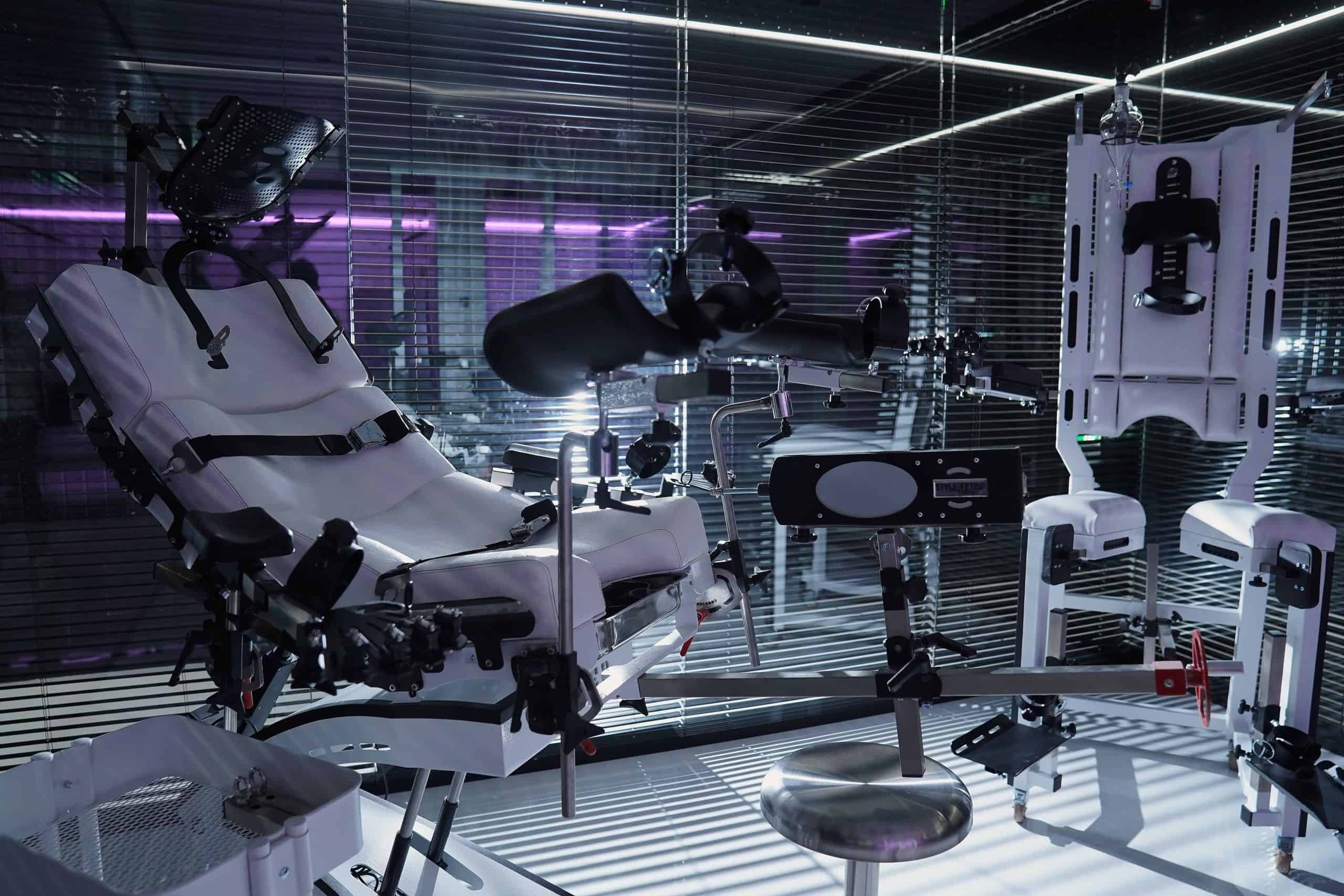 Das technologische Highlight ist zweifellos das elektrische Andreaskreuz “Armageddon II”. Mit seinen elektronischen Steuerungselementen hebt es Fixierung auf ein neues Level. Flankiert wird es von der Elite der BDSM-Möbel: Dem Gynstuhl “Boomer” (Neue Generation) und dem massiven Sklavenstuhl “Warlord”.