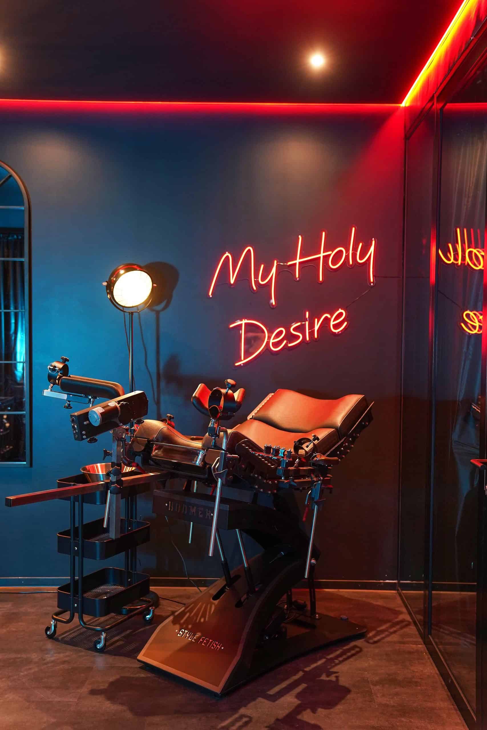 Dieser Raum ist mehr als ein Spielplatz, er ist eine Bühne für Rituale. Ob Sie Buße tun wollen oder angebetet werden möchten, die Mischung aus Kirchen-Ästhetik und kaltem Stahl sorgt für ein Kopfkino der Extraklasse. Hier wird die Moral an der Tür abgegeben und durch Ihre eigenen Gesetze ersetzt.
