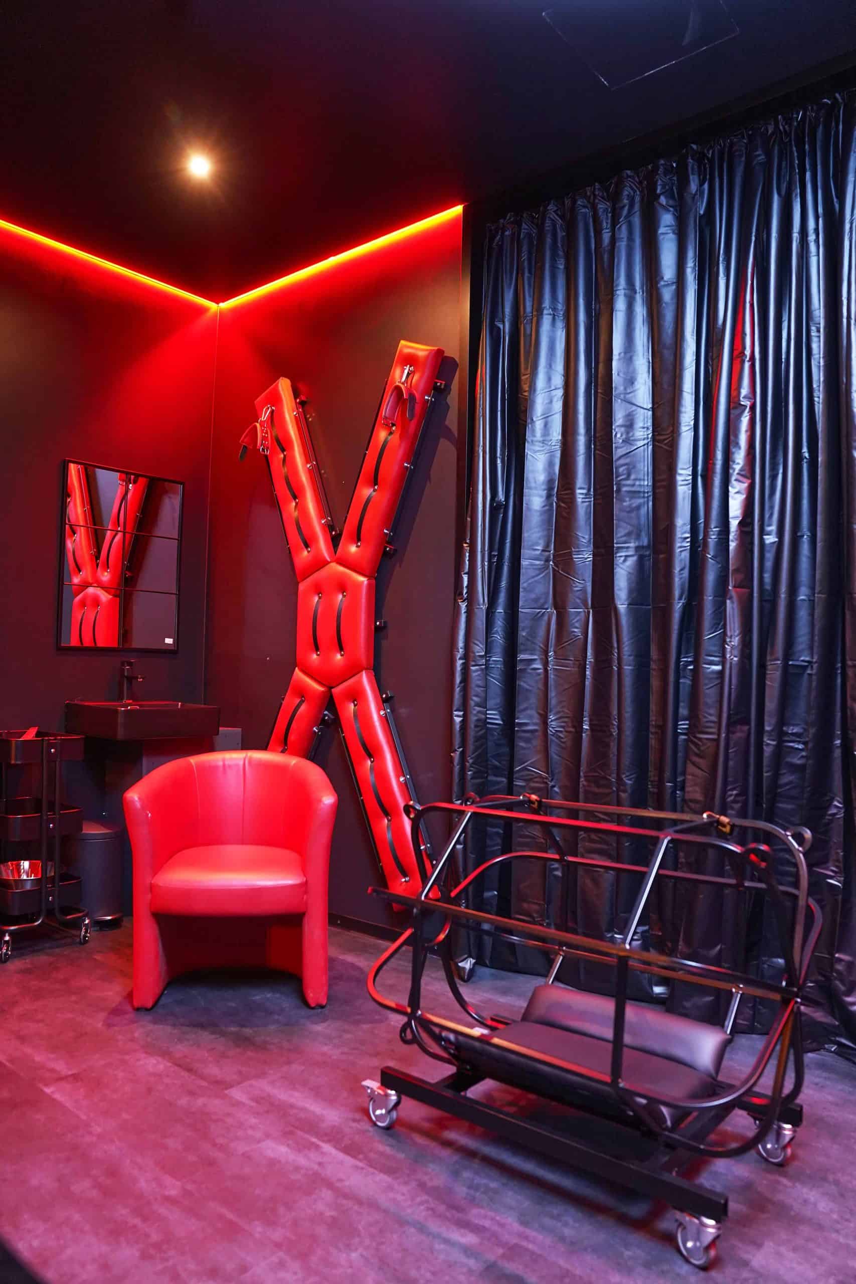 Wo tiefes Rot auf gnadenloses Equipment trifft: Vom Lederbett bis zum elektrischen Facesitting